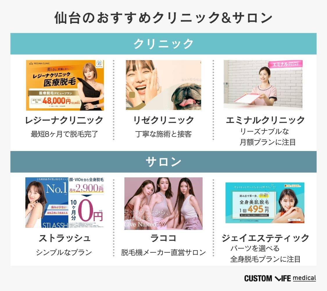 仙台駅からアクセスしやすい脱毛クリニック・サロンをご紹介してきましたが、気になる店舗は見つかりましたか?