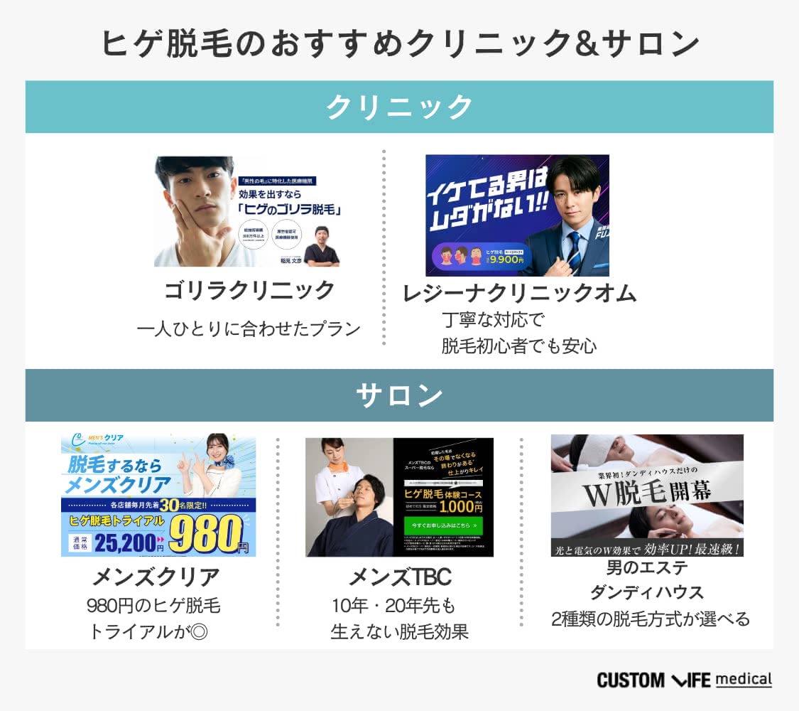 ◆ヒゲ脱毛のおすすめクリニック&サロン