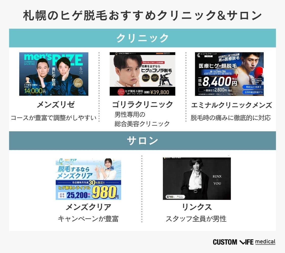 最後に、札幌のヒゲ脱毛おすすめクリニック&サロンをおさらいします。